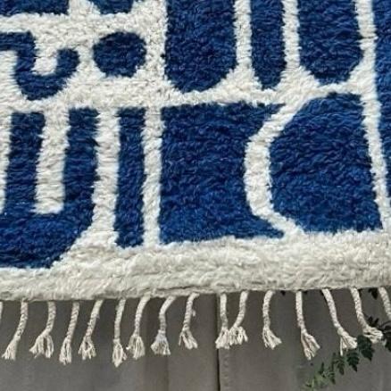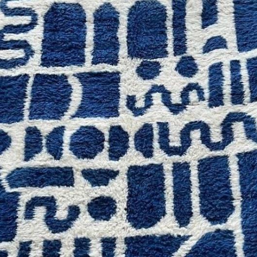 La fuerza del azul y la pureza del blanco se entrelazan en esta alfombra, creando un contraste que respira frescura, energía y calma. Sus formas geométricas, precisas y llenas de significado, evocan el orden de la naturaleza y la armonía de lo esencial.