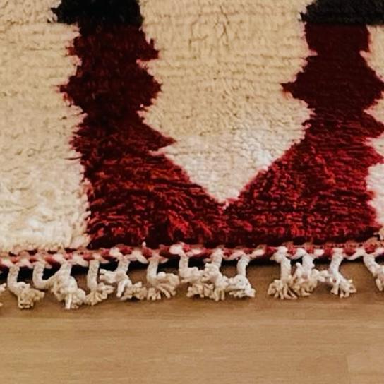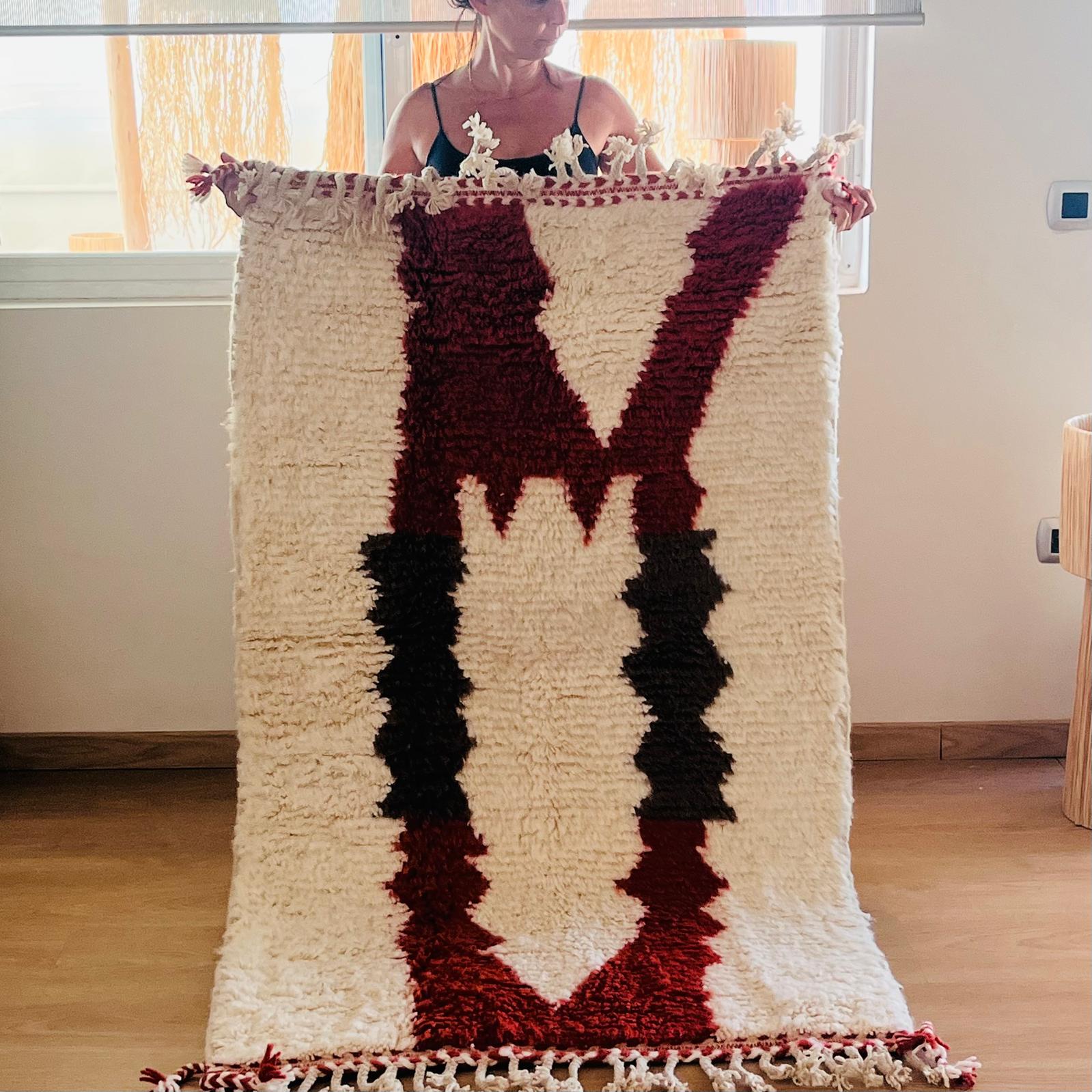 La alfombra Atlas es una obra artesanal que refleja la fuerza de la tierra y el espíritu del Atlas marroquí. Tejida a mano con lana de oveja 100% natural, sin químicos ni procesos industriales, cada pieza es un testimonio de tradición, sostenibilidad y belleza auténtica.
