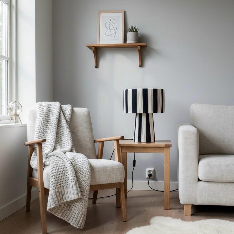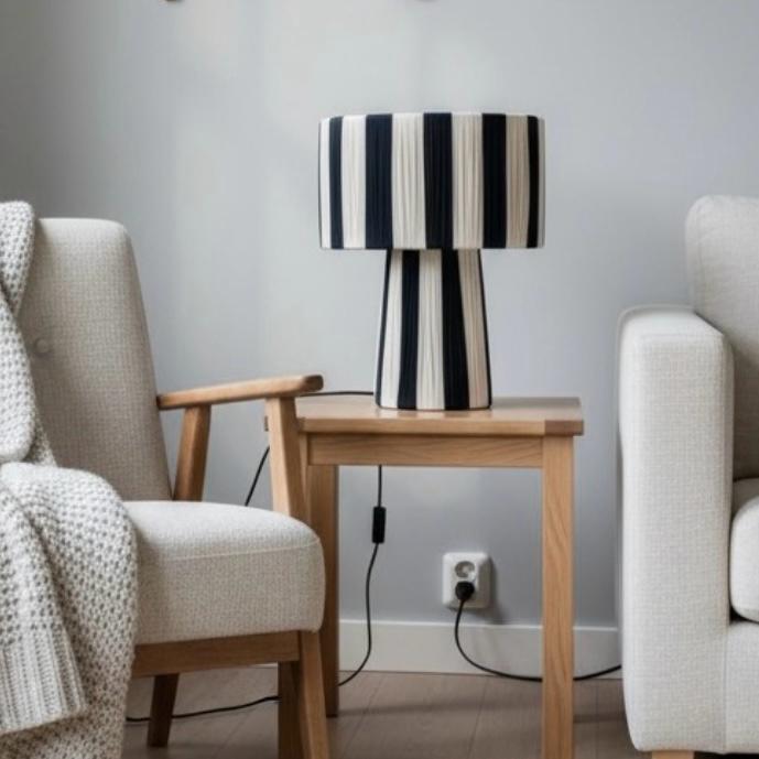Lámpara mesa bicolor natural y negro